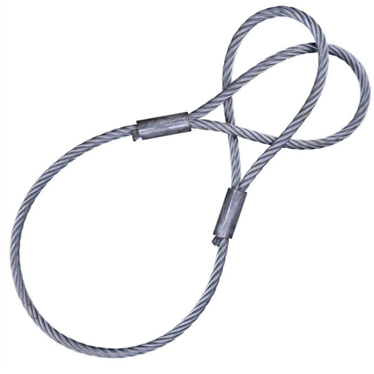 Drücken Sie die beiden Enden eines Stahldrahtseils mit Hülsen zusammen, um eine durchgehende Schlaufe zu bilden. Dies ist der am häufigsten verwendete Typ mit extrem breiten Einsatzmöglichkeiten.